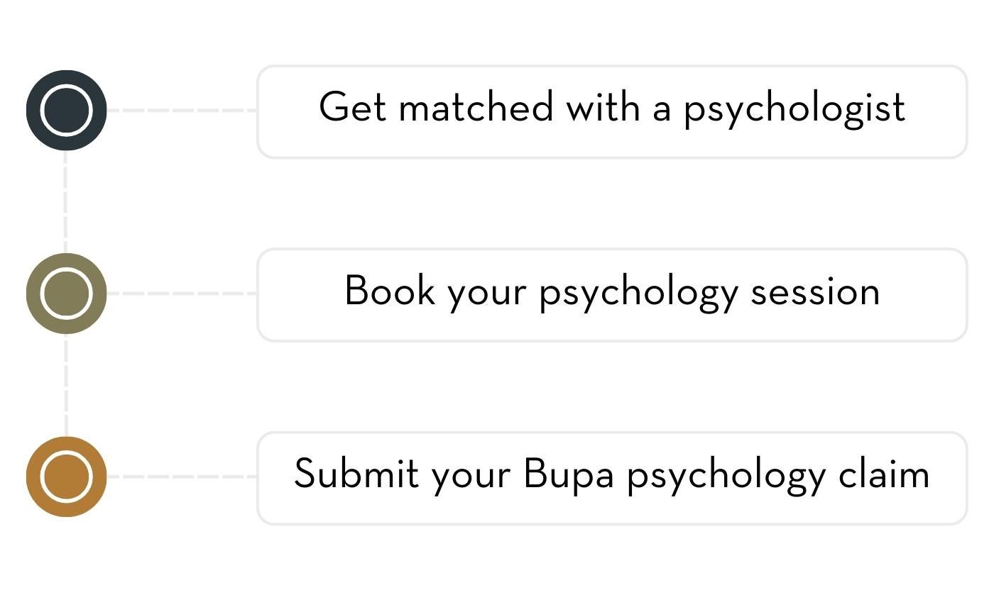 We've made Bupa claiming easy. After your psychology session we’ll email your paid session invoice directly to you so you can submit your Bupa psychology claim straight away.